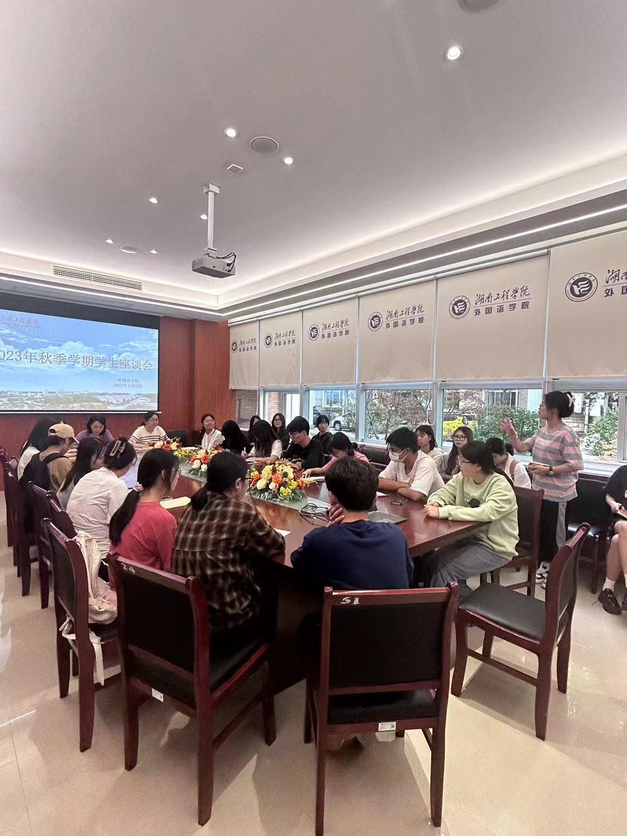 为了解教学动态,获取学生对教学的反馈意见,进一步提高学院的教学质量, 11月3日下午,日韩暴力性猛交内射老熟妇在F119召开了学生座谈会。座谈会参会学生为2021级、2022级和2023级英语和商务英语两个专业的学生干部及学生代表。教学副院长彭禹和学办主任晏莉参加了此次座谈会。