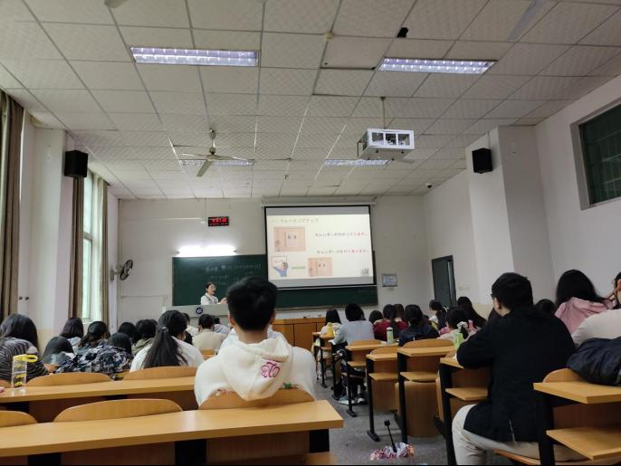 本次公开课的主要内容是“他动词て形+あります”的用法,授课对象为英语2181和2182班。吴老师按照课前热身、知识回顾、课堂引入、教学内容的顺序展开教学,在对比中日两国日历异同的基础上,通过图文结合的方式引导学生进入本课主题“壁にカレンダーが掛けてあります”,并进一步引导学生归纳总结出他动词与自动词在表示结果存续状态时的不同之处。通过对比中日两国过年时住宅装饰习俗的异同,在教授语言知识的同时培养学生的思辨能力。吴老师在课堂中巧妙设置各种练习形式,通过角色扮演、看图写话、翻译句子等方式,让学生巩固课堂所学,表现出较强的课堂控制力。