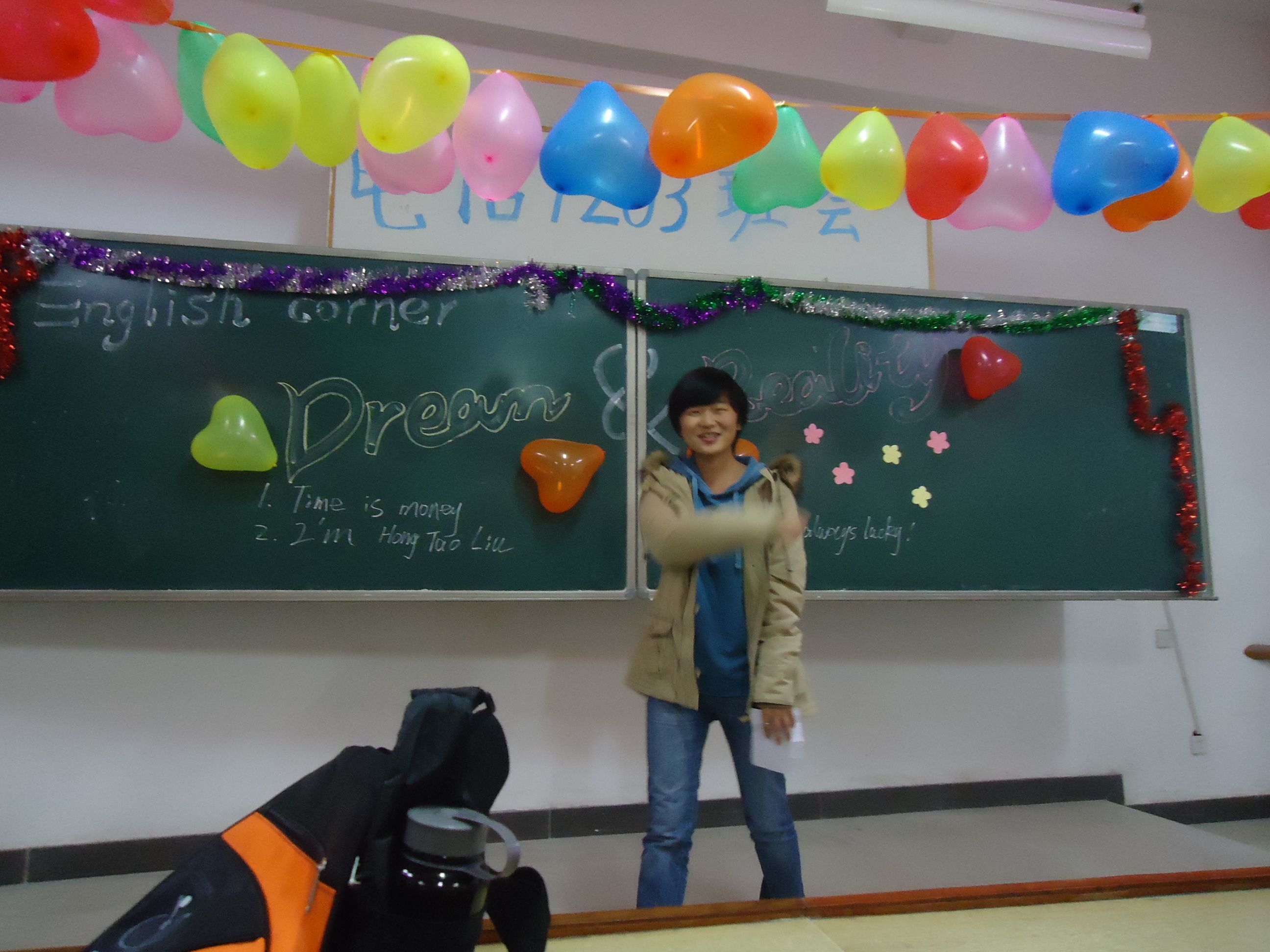 2012年11月4日晚7点,日韩暴力性猛交内射老熟妇团组织部在教学楼C座开展了以“dream and reality”为主题的英语角活动。大一大二参与此次活动。