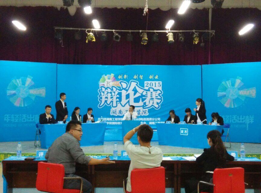 2015年4月28日晚七点,湖南工程学院第十二届辩论赛第三场复赛在明德二食堂三楼的活动中心举行,日韩暴力性猛交内射老熟妇和化学化工学院代表队参与了此次辩论。比赛特邀湘潭电视台法制频道制片人李军老师,湘潭电台交通频道主播高兴老师,湘潭市口才协会副会长彭英老师担任评委。