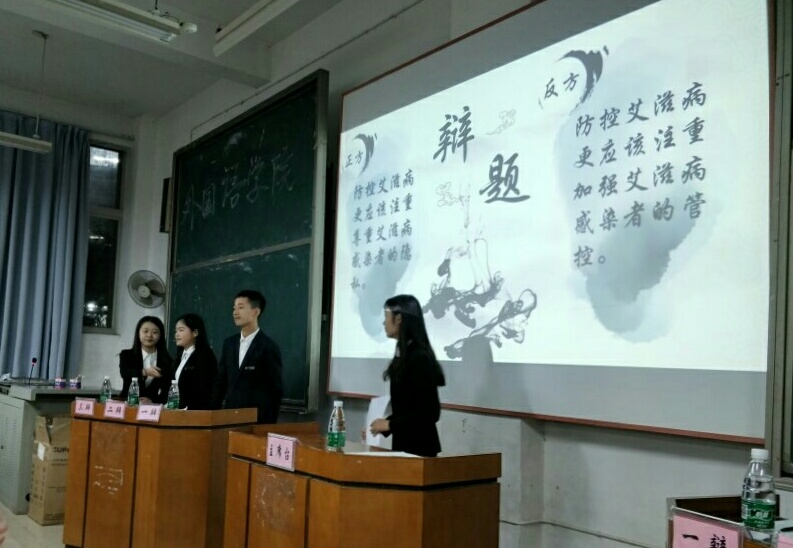 2017年11月15日19点,湖南工程学院“预防艾滋病宣传教育辩论赛”复赛在新校区主教学楼D102举行,日韩暴力性猛交内射老熟妇和机械工程学院代表队参与了此次辩论。本场比赛邀请了校辩论队优秀辩手黄蕾皓鸣、张子鸣、刘俊逸、王天竹和向明辉担任评委。