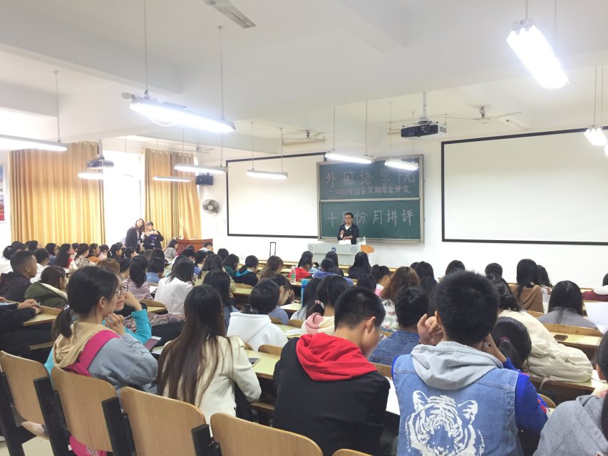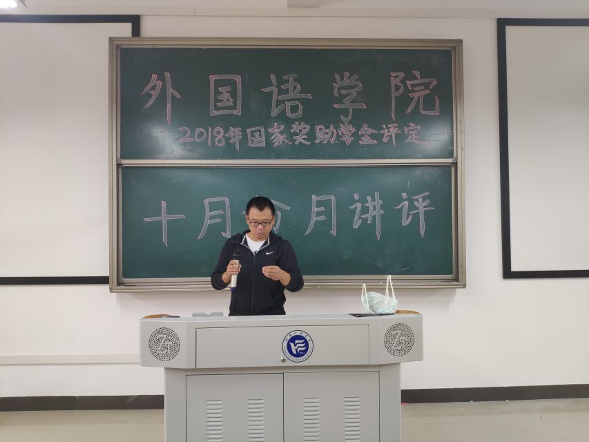 会议伊始,连泰老师核实了全院各班应到人数并宣布月讲评正式开始。连泰老师首先将9月份各班日常到课情况进行了通报。接着,他对国家励志奖学金、国家助学金评选细则进行了说明并对申请流程作出具体指导,让同学们特别是大一新生深入了解了如何获得奖助学金。紧接着,连泰老师进行了学风教育,对18级学生的晨读及晚自习做出了具体的要求,并对请假制度进行了强调,举例说明不能以驾校练车为理由请假。他随后对同学们进行了安全教育和防止网络欺诈等教育,并对寝室安全卫生问题提出了具体要求。最后,连泰老师对下周二省督查组来我校进行章程现场督导做出了要求,提醒各班同学要认真学习章程内容。