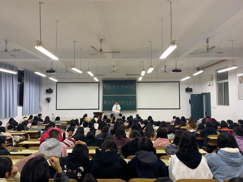 为了让同学们更好的了解与适应大学生活,掌握良好的学习技能。11月18日晚上7:00,日韩暴力性猛交内射老熟妇在教学楼D101举行了2019级新生学习经验交流会。本次交流会由学院团学会干部周通主持,学院团学会主席团出席本次交流会,17级优秀学生代表刘彦卓、肖婷婷、刘竞作为特邀嘉宾与2019级新生分享学习经验。
