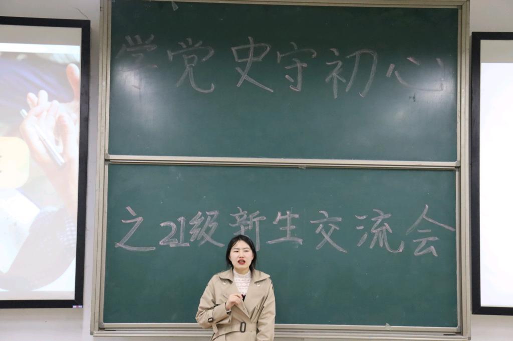 此次新生交流活动包含三个部分——“回望奋斗征程”、“体悟时代风采”、“畅想明日画卷”。在“回望奋斗征程”环节,罗望阳以PPT形式带领同学们回忆党的百年奋斗历程:中国共产党在面对“帝国主义、封建主义、官僚资本主义”这“三座大山”时挺身而出,挑起民族脊梁,团结亿万中国人民奋起抗争,以百折不挠的精神,建立了中华人民共和国。