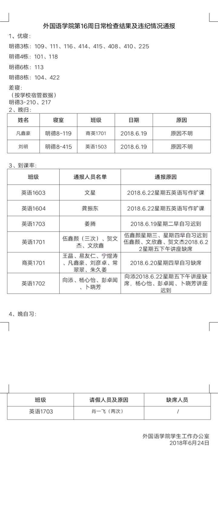 日韩暴力性猛交内射老熟妇第16周日常检查结果及违纪情况通报