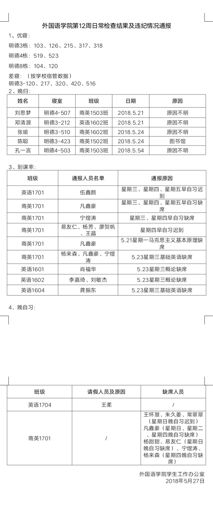 日韩暴力性猛交内射老熟妇第12周日常检查结果及违纪情况通报