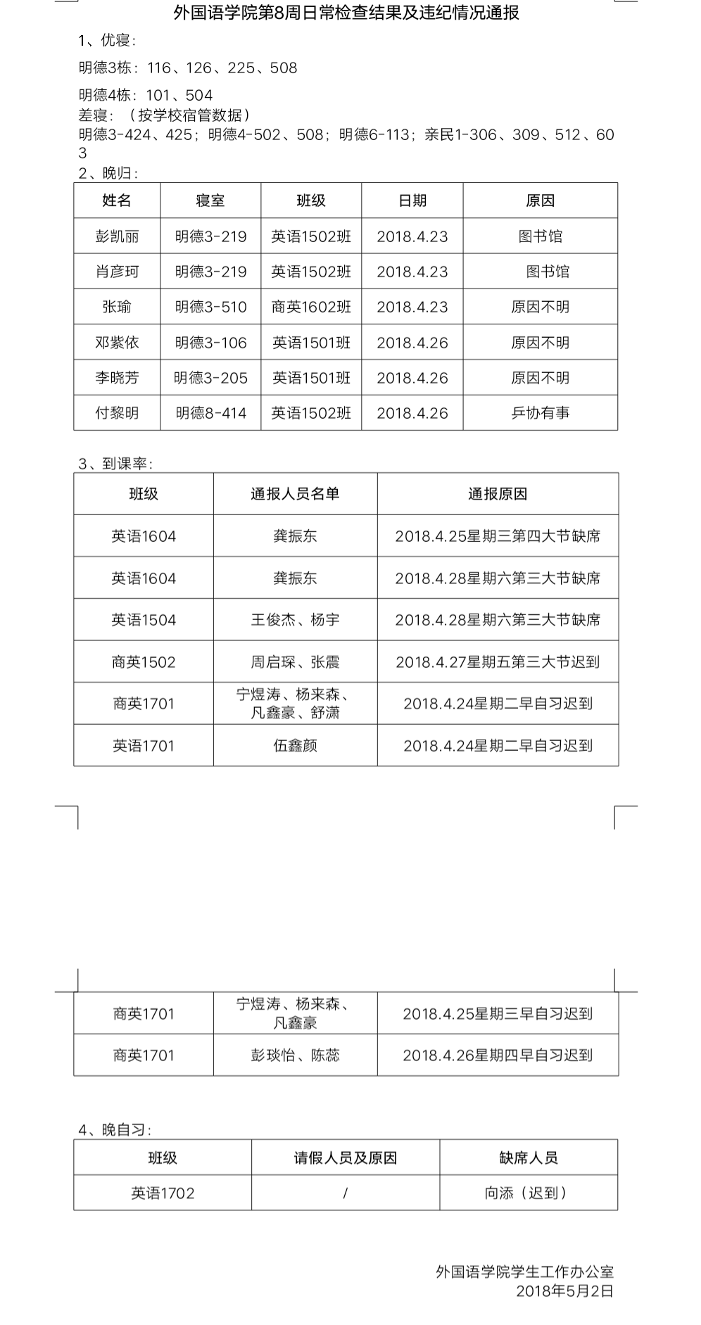 日韩暴力性猛交内射老熟妇第7周日常检查结果及违纪情况通报