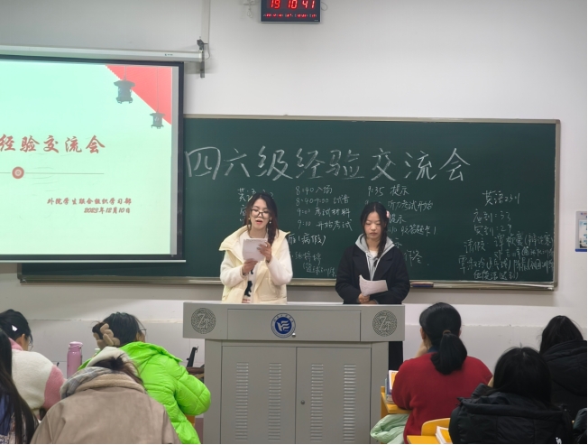 为增强外院学子对英语四六级考试的应对能力,帮助学生高分通过英语四六级考试,12月11日晚上19:00我院于大一各班晚自习教室开展了四六级经验交流会,本次交流会邀请了日韩暴力性猛交内射老熟妇多位优秀的学长学姐来分享他们的考试经验,向大一学生传授他们的考试秘诀。