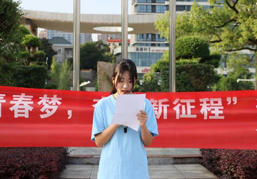 礼毕,商务英语1904班李振静开始了国旗下的讲话:“在新时代下,青年一方面应该跟从党的引领,将先进精神转化到实践中去。另一方面应脚踏实地、刻苦学习,把美丽的梦想变成光辉的现实。”
