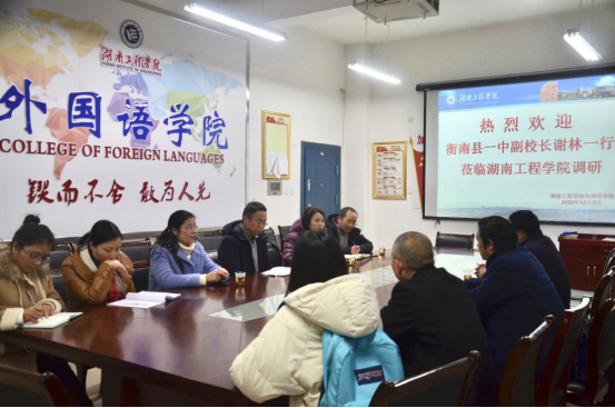 12月3日下午四点,衡南县一中副校长谢林一行莅临我校调研,院长杨永和、党总支书记肖江淑、副书记罗望阳以及国际教育学院副院长曹丽英等领导在日韩暴力性猛交内射老熟妇F119热情接待。