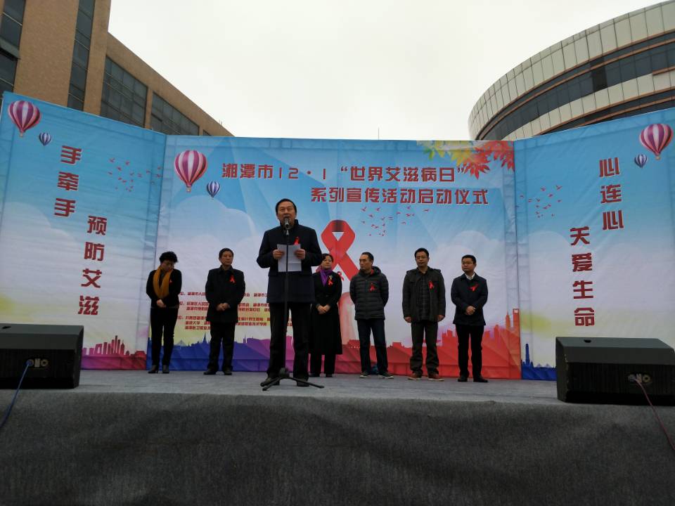 12月1日上午,第三十个世界艾滋病日来临之际,预防艾滋病宣传系列活动启动仪式在湖南工程学院知行广场上隆重举行,本次活动的主题是“共担防艾责任、共享健康权利、共建健康中国”。湘潭市人民政府副市长刘永珍,湖南工程学院校长刘国繁,湘潭市卫计委党组成员刘瑞林,计划生育协会副会长兼秘书长陈小剑,湘潭市疾控中心主任马金辉等领导莅临开幕式现场。湘潭市多所高校的师生代表及社会志愿者也参加了启动仪式。