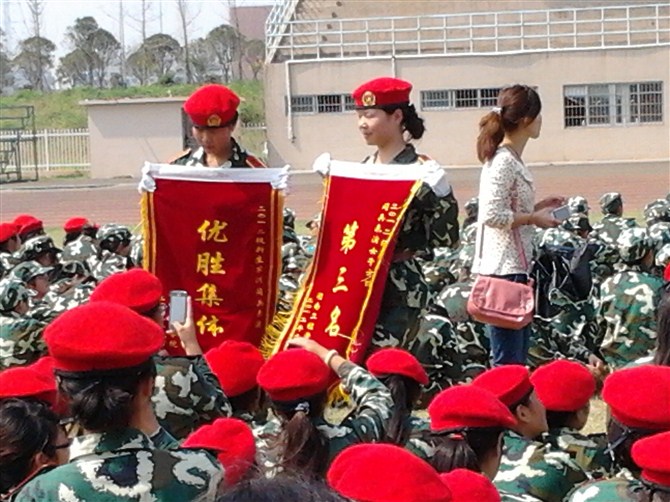日上午,我校在主校区体育馆举行了盛大的阅兵式暨军训总结表彰大会。我院方阵获得“优秀集体”的荣誉,同时也荣获了女子方阵第三名的佳绩。