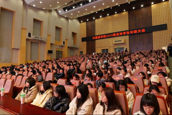 “春天播种,四季耕耘,走好脚下的路,我们必能收获繁星满天。”会议在朱洁温暖的寄语中结束。她对全体2024级学生提出三点希望,一是争做时间的朋友,语言学习没有捷径,必须一步一个脚印;二是做勇敢的试错者,希望大家勇于尝试,勇于创新,挑战自我,不断超越自我;三是做有温度的世界公民,为构建人类命运共同体贡献青春力量。