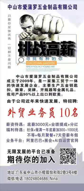 中山爱蒲罗五金制品有限公司招聘