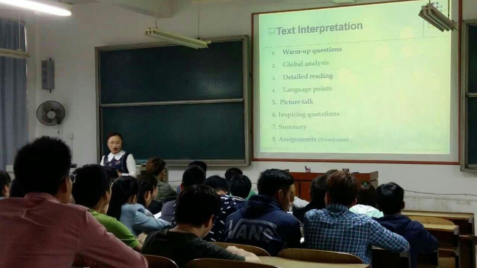 公开课后,大英一教研室全体老师在教研室主任刘青老师的主持下开展了对本次课的精彩点评活动。罗胜杰副院长对课程的教学过程进行了详细点评。他认为李贞金老师的进步颇为显著,备课充分,对学生的熟悉程度也值得赞赏。刘向红教授着重指出了课程的教学目标的重要性。夏艳萍老师也对此次公开课给出了中肯的评价,肯定了李贞金老师在素材准备方面所作出的努力。本次公开课活动,为我院教师提供了一个相互交流和学习的平台,使大家在教学和评课上都得到了磨炼和提高,同时也充分展示了我院新一代教师的风采和努力钻研的风貌。