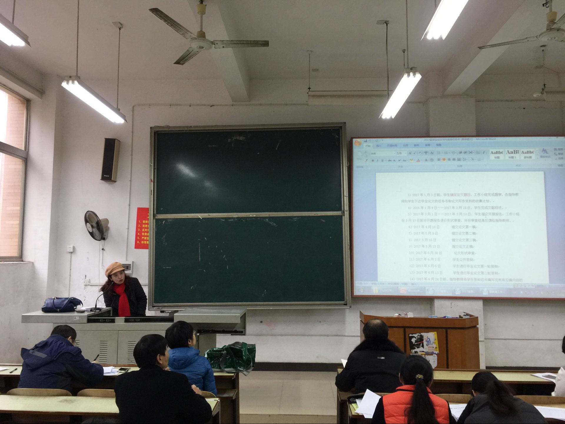 朱洁、吴斐强调了毕业论文的重要意义,对相关环节、完成时间节点及文本格式要求做了强调,规定大家加强与指导老师的联系,确保高质量完成毕业论文。然后就毕业实习做了部署,按照所选方向,有针对性地开展实习,对实习期间的安全问题作了重点强调,要求按照学校规定,办理相关手续。