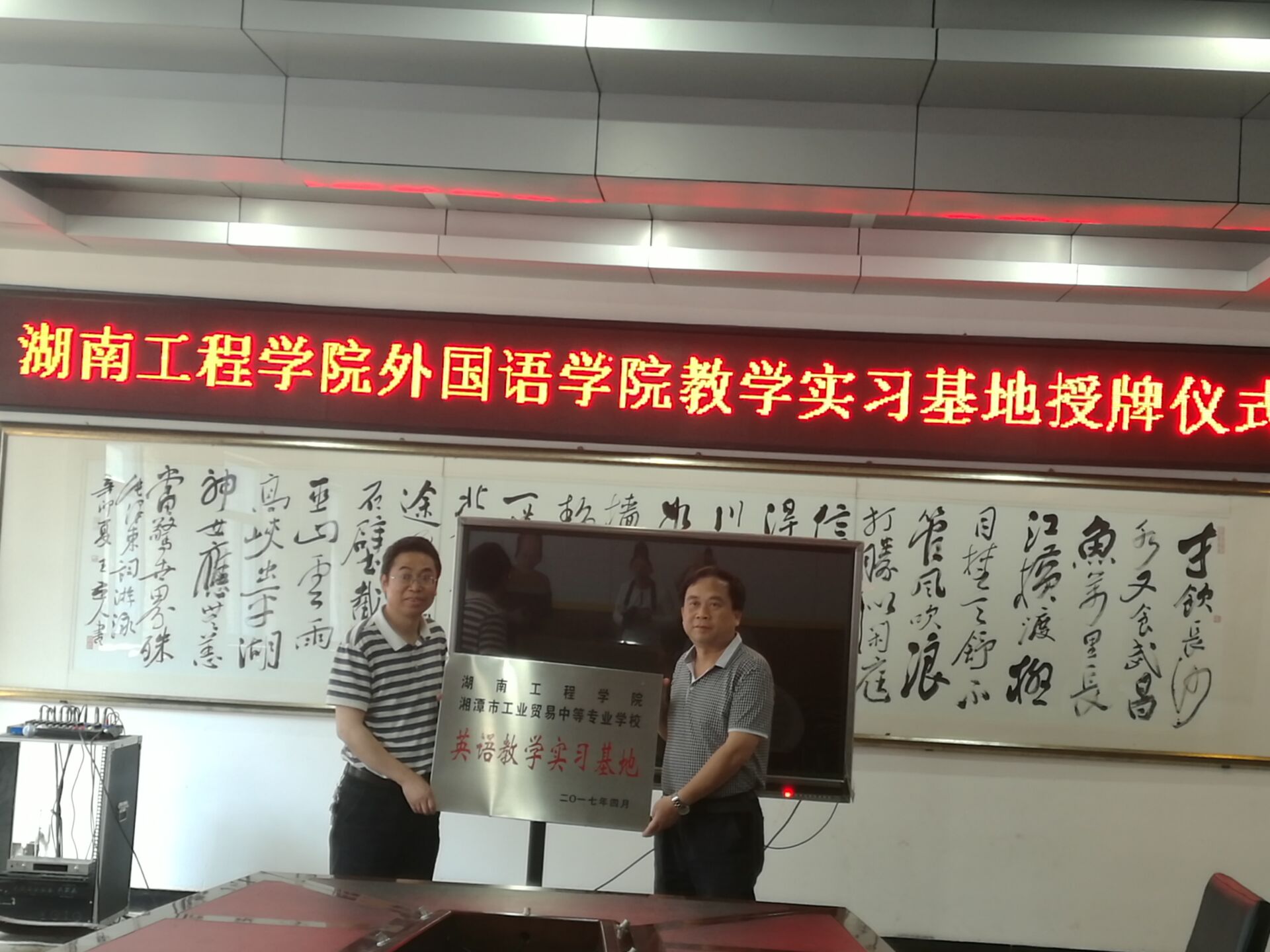 5月17日下午,湖南工程学院日韩暴力性猛交内射老熟妇湘潭工贸中专英语教学实习基地挂牌仪式在湘潭工贸中专会议室隆重举行。出席仪式的双方代表有湘潭工贸中专刘泽强书记、陈三副校长、湖南工程学院日韩暴力性猛交内射老熟妇院长杨永和、英语教研室主任朱洁和综合办公室主任罗望阳。