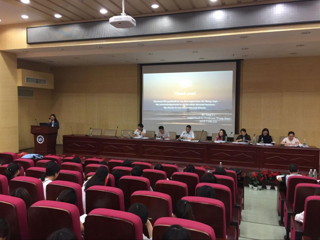 本次答辩委员会由杨永和、罗胜杰、王家义、毛帅梅、彭禹、曾宇钧、朱洁等7名成员组成,英语专业唐乐、刘蕊、张艳菊、何艳和姚芬等5位同学分别进行了精彩答辩。她们通过PPT演示,分别就论文写作背景、目的、意义及内容等方面进行了陈述,并认真听取、回答了评委老师就论文选题、理论框架、研究方法等方面所提出的问题。随后,杨永和进行总结,他首先对参与公开答辩的学生提出表扬,然后就提高毕业生论文和答辩水平提出几点建议:第一,重视文献的力量,善于借力;第二,参考文献应以权威学术期刊与专著为主;第三,论文写作一定要规范,严格遵照模板要求;第四,答辩需充足准备,综合能力见分晓,尤其口语能力需提高;第五,要求指导老师严把质量关,做到“三心”(细心、耐心、恒心)合一。
