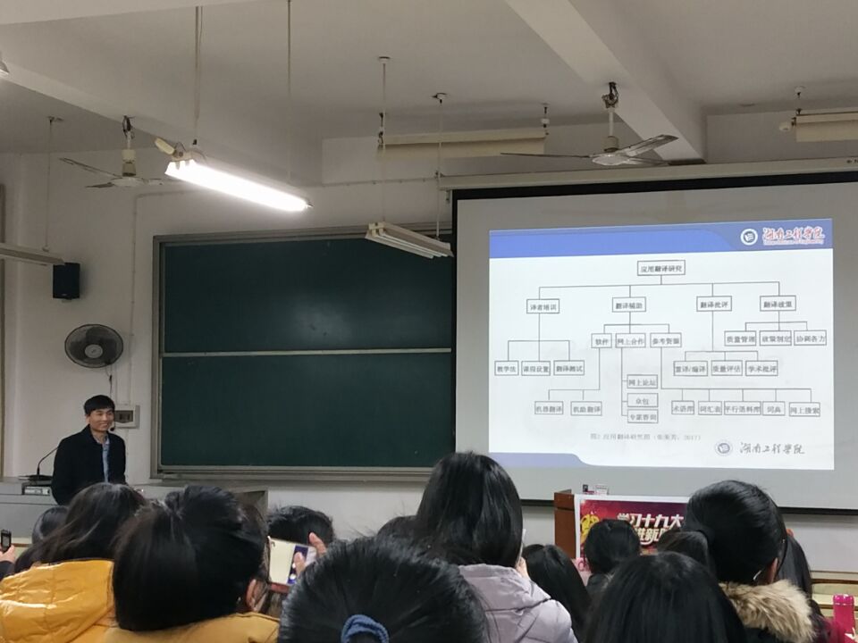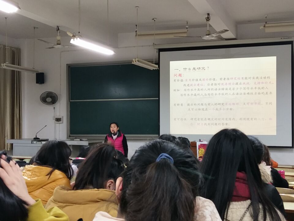 为切实做好2018届英语专业学生毕业论文工作,12月26日晚,日韩暴力性猛交内射老熟妇英语教研室邀请了罗胜杰副院长、王家义副院长、刘向红教授和彭禹博士分别就语言文化、翻译、英语教学和英美文学四个方向的毕业论文选题与研究方法进行了专题讲座。教研室朱洁、章明蕾、唐心洁、毛帅梅、刘肯红、周旭阳等老师与英语专业14级全体同学在D-502一起聆听。
