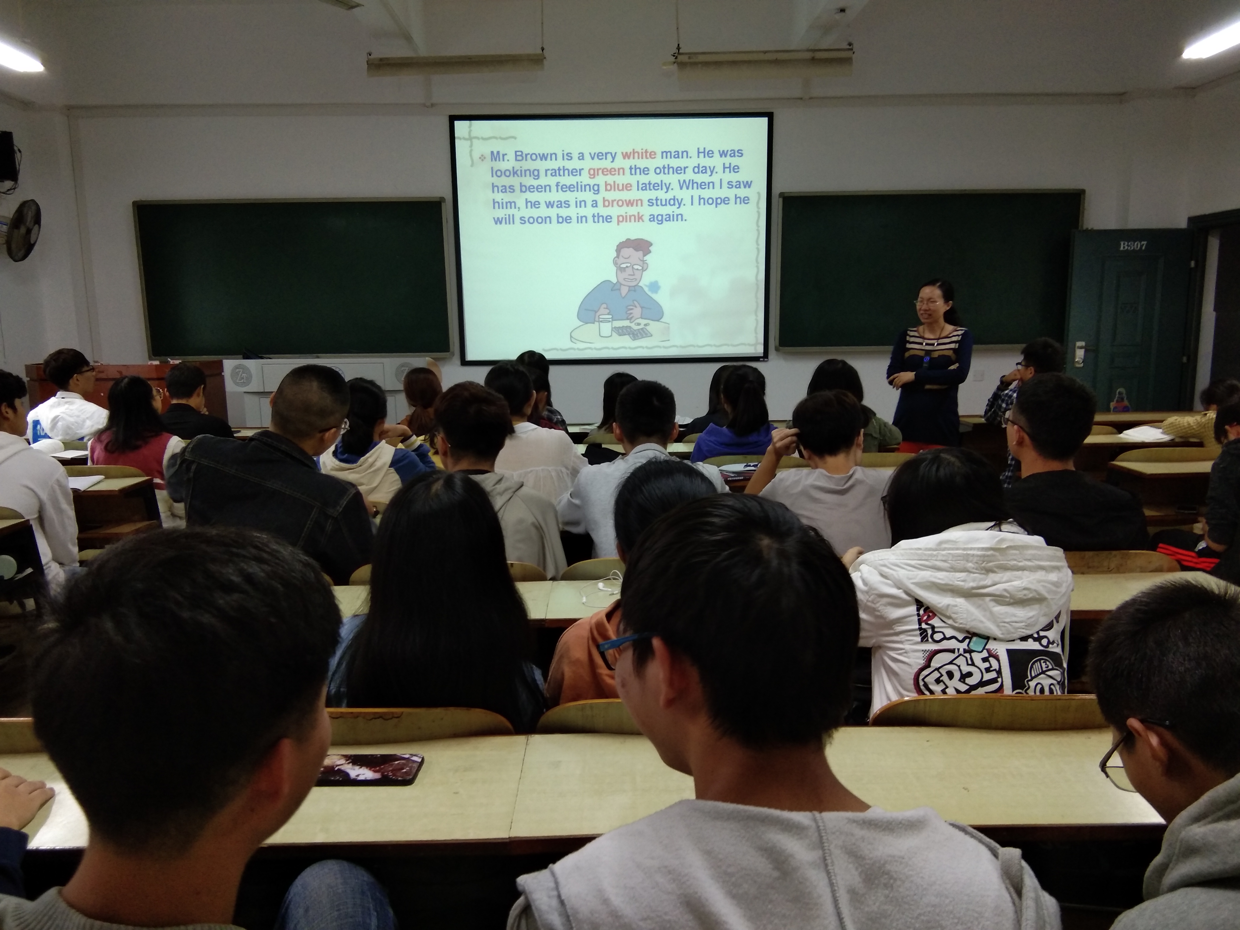 此次讲座首先提到语言是文化的载体,文化是语言的内涵。颜色词,作为语言文化中最积极、最活跃的组成部分,直接反映不同语言环境下由于民族风俗、地理环境、思维方式、宗教信仰和民族心理等文化背景的差异而造就的不同视觉感悟上的不同联想意义,因此,在英汉颜色词的翻译上,我们应秉承翻译是一种能动的文化建构思想,思索如何在翻译实践中突破英汉文化障碍,准确有效地传达原文信息。
