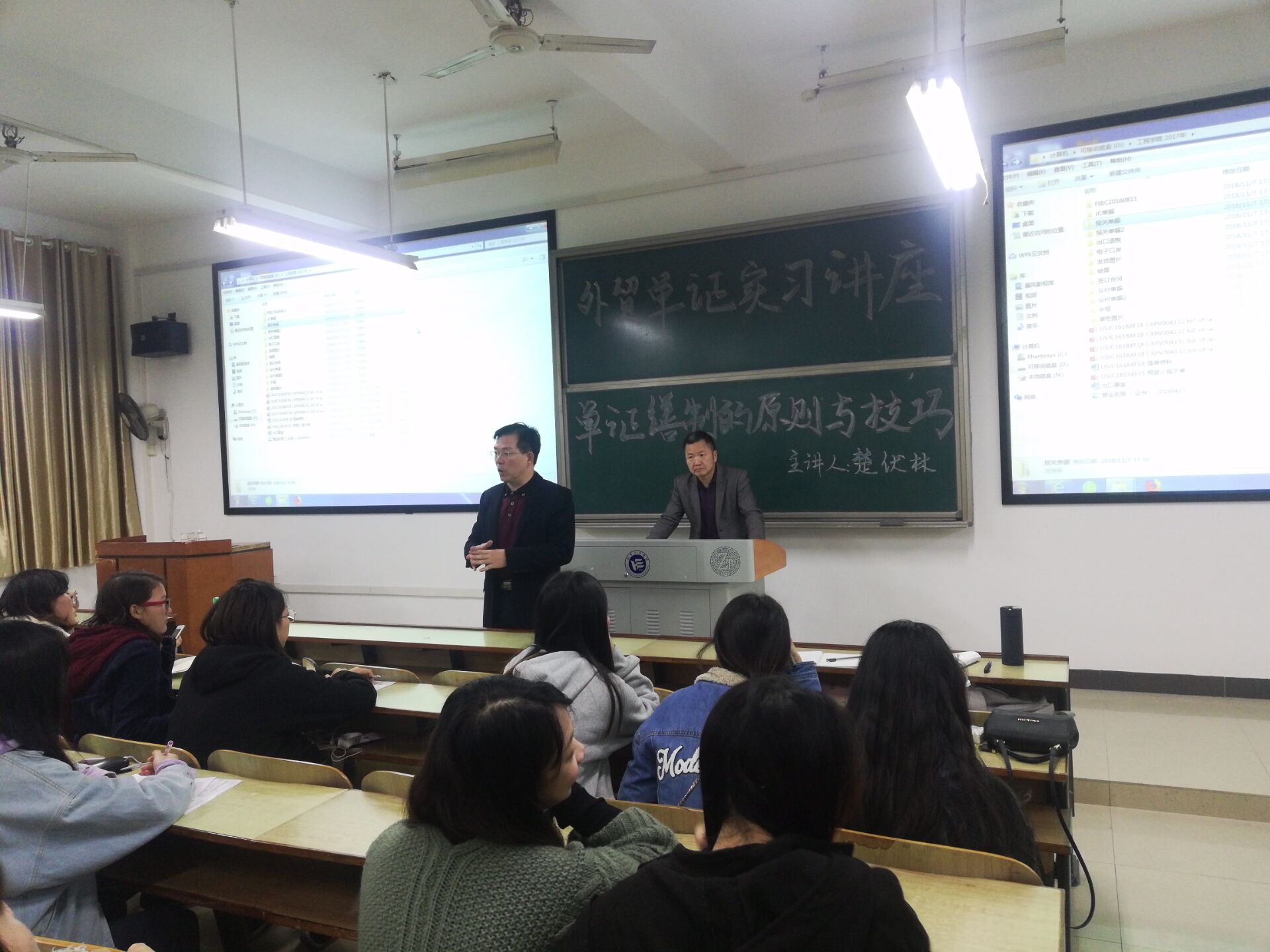 为全面提高日韩暴力性猛交内射老熟妇商务英语专业学生的外贸单证制作能力,11月8日晚,日韩暴力性猛交内射老熟妇在D401举办了“外贸单证实习专题讲座”。本次讲座由商务英语专业教师沈文辉博士主持,长荣国际贸易有限公司副总经理楚伏林先生主讲,2016级商务英语专业全体学生聆听了本次讲座。