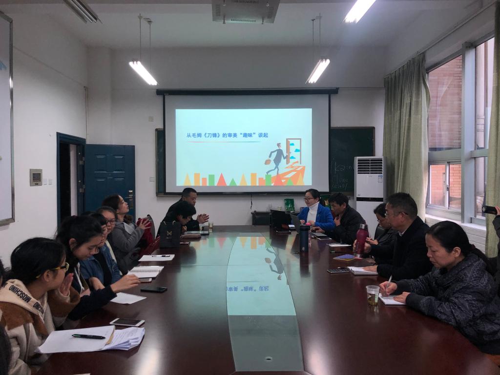 首先,杨永和介绍了两位主讲人近期研究动向,指出本次学术活动的目的在于分享研究成果,了解领域前沿,启发师生科研思路。接着,彭禹做了题为“从毛姆《刀锋》的审美‘趣味’谈起”的学术报告。她以“双十一”全民购物狂欢所折射出的当下消费文化导入,从消费观下的审美趣味、回归身体感性的审美趣味和审美趣味与文化三个方面深入剖析了《刀锋》这部作品中所反映出的美国一战后新兴的资本主义价值观念。其中,彭禹老师详细分析了拉里和艾略特这两位审美趣味截然不同的人物,前者削尖脑袋钻入上流社会,凭一身本事游刃有余地周旋于达官显贵之中;后者因挚友为之牺牲而重新审视人生、甚至前去东方文明中找寻生命的真谛。由此看出一战后资本主义社会的发展使工具理性走向极端化,大众审美趣味符号化。作者毛姆有感于西方世界的精神危机,希望借主人公拉里为现代人探索出一条精神出路。报告最后,彭禹老师呼唤在座学生反思自身消费观念和追星行为等,提升真正的“趣味”。