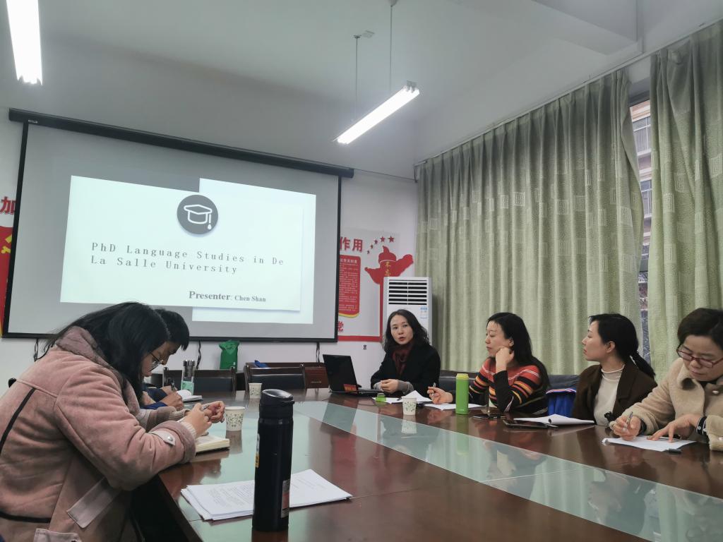 交流会上,曹娟从宏观层面就学校课程设置及培养目标、逻辑思维和批判性思维的培养、研究方法选择以及论文前期准备及预期研究方向等四个方面进行了介绍。陈珊从Syllabus、Teaching Procedure、Article Review和Final Paper等微观层面给大家分享了Academic Writing课程的具体学习模式及要求。张琼燕就基础知识、学习方法、研究方向及研究选题等方面介绍了在菲律宾读博期间面临的困惑以及自身的成长与提升。沈仲平就教育管理专业的课程模式、实践环节及Research Work的具体操作进行了介绍。四位博士的分享全程干货满满,赢得了全场阵阵掌声。虽然研学过程较艰辛,但是她们收获很多,且乐在其中。