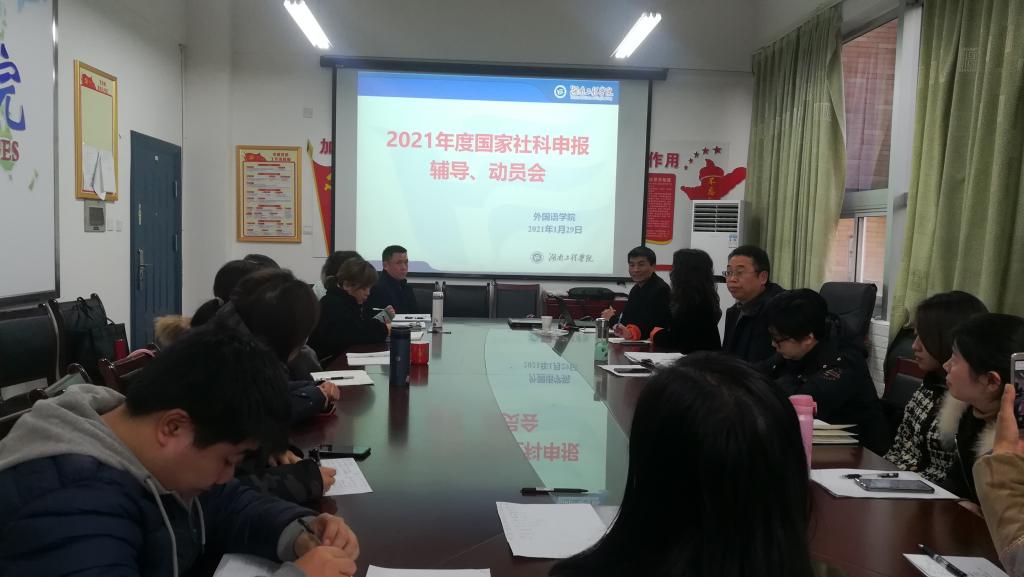 随后,王家义就国家社科申报作交流报告。他首先解读了学校的通知,特别强调了2021年国家社科申报书中的四点变化,希望与会教师重视课题指南,做好选题,撰写高质量的课题申报书。随后,他通过国家基金申报书案例,对项目申报进行针对性辅导,将科研设计、实施和评估有机结合起来。最后,他推荐了黄忠廉教授的两本书籍:《人文社科项目申报300问》和《人文社科论文修改发表例话》。