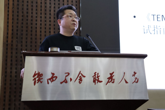 周敏老师首先给2019级全体学生进行动员。通过分析近几年专四题型的变化及调整,他指出专四考试总体来说较前几年难度降低。他强调同学们一定要坚定信心,经过接下来两个月的备考,相信自己一定能够一次通过。随后,周敏老师从专四考试大纲、考试六大题型进行整体概括讲解,按题型卷面顺序进行分模块解析,从题型要求、选材类型层面对题型内容进行详细阐释;从测试目的、测试原则、批改标准等方面对同学们提出具体要求。周敏老师特别指出,从语言知识层面来讲,同学们需要具备分辨地方英语语音语调的能力,对英语基本写作习惯有一定了解,要充分掌握专四范围内的词汇和语法结构;从非语言能力方面来讲,同学们应该熟知英美国家文化背景知识,注重锻炼记忆能力,规范书写习惯,做到卷面干净整洁、条理清晰等。除此之外,周敏老师给同学们介绍了实用备考词汇书,提供了考试材料的主要来源和渠道。他希望同学们能充分利用备考时间,掌握专四词汇、短语和相关运用,坚持做好每天的精听、泛听练习。并且在备考过程中,同学们不仅需要总结真题卷和模拟卷中的错误经验,也需要积累正确题目的经验。周敏老师认为这样长此以往的训练和积累会让同学们在专四考试中十拿九稳。