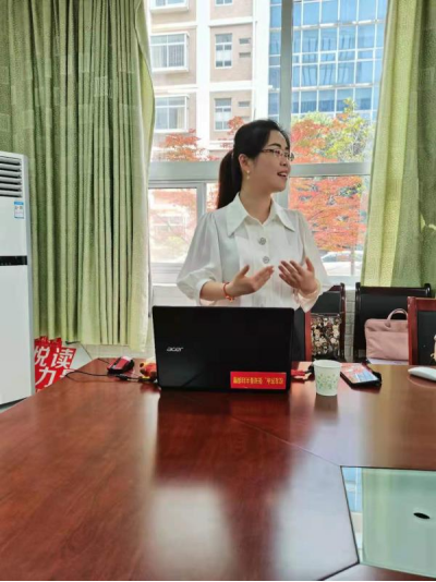 接下来,关艺仪就湖南省普通高校课程思政教学比赛(外语类)与在座教师进行了交流。她介绍了比赛流程,分享了关于赛事的个人思考,讲述了备赛策略,提出了参赛建议。她指出:高校课程思政教学比赛(外语类)的核心是教师对外语课程思政教学理念和实践的综合体现。课程思政以语言教学为核心,教学中应体现教学难度层次,突出教学重点。语言教学与思政教学二者不能互相替代,思政教育是在语言教学过程中的思想点拨,二者逻辑自洽,融合于无形,课程思政是方法,不是加法。