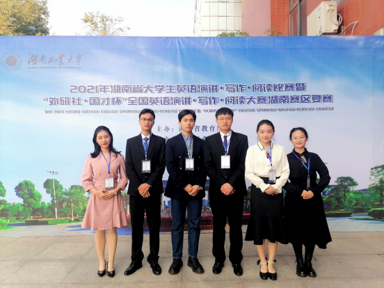 本次比赛,首次采取大学生英语演讲、写作、阅读三赛合一的形式举行,团体记总分,获奖比率为60%,难度较往年陡增不少。比赛中我校选手不畏强敌,稳定发挥,其中英语1901班邓云锜、英语1902班王丽霞分别荣获英语写作比赛一等奖;英语1901班易书涛,新能源1902班谢婧分别荣获英演讲比赛二等奖;通信工程1902班曹鑫匀,工商管理1981班罗璨晨,国际贸易1982班李娜分别荣获英语演讲比赛三等奖;商英1902班的胡义和罗思琴获得湖南省英语阅读比赛三等奖;难能可贵的是,我校英语1901班邓云锜同学(曾宇钧老师指导)更是以写作比赛全省第二名的佳绩入选国赛资格,与其他两位选手一起代表湖南省参加全国英语写作比赛。