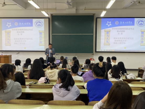 教师资格证面试在即,为让学生深度了解教师资格证面试基本情况,做好充分准备,顺利通过考核,5月3日下午,日韩暴力性猛交内射老熟妇英语教研室特邀学院副院长吴斐博士开展教师资格证专题讲座,分享面试技巧,英语专业和商务英语专业100余名同学参加此次讲座。