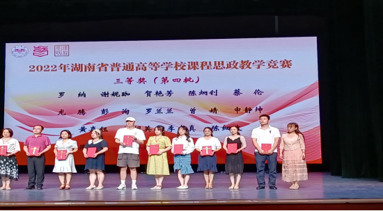 湖南省普通高等学校课程思政教学竞赛旨在贯彻落实中共中央办公厅、国务院办公厅《关于深化新时代学校思想政治理论课改革创新的若干意见》和《高等学校课程思政建设指导纲要》文件精神,落实立德树人根本任务,高质量推进以“课程思政”为目标的课堂教学改革,全面提升全省高校教师课程思政教学能力。此次课程思政教学竞赛分理工(医学)类、文科类及外语类三类,经过校级初赛、省级复赛,省内各高校共181个教学团队进入决赛,经过激烈角逐,最终评出一等奖27项、二等奖64项、三等奖90项和优秀组织奖10项。
