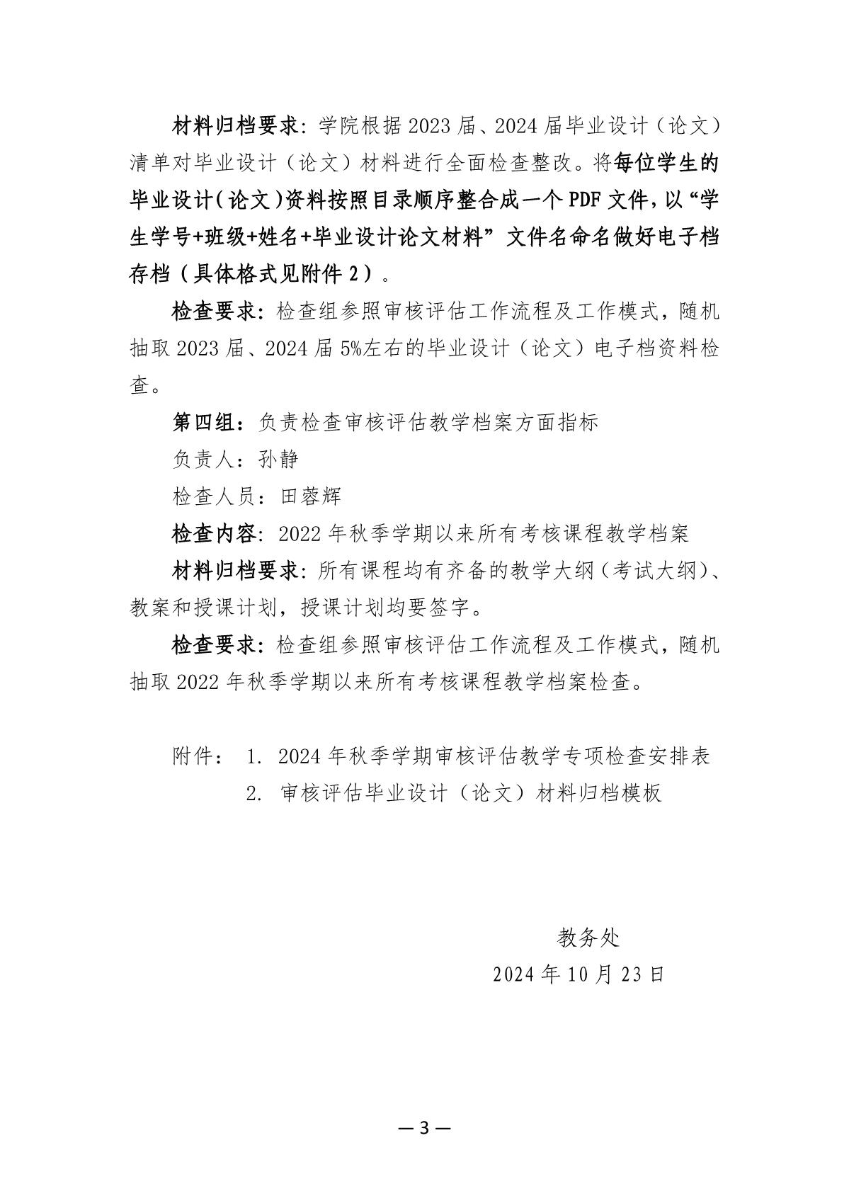 【审核评估】关于开展2024-2025学年第一学期审核评估教学专项检查的通知