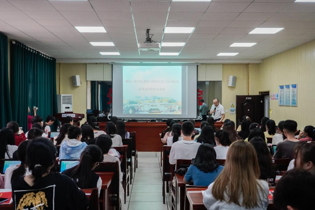 10月6日下午,日韩暴力性猛交内射老熟妇迎校庆70周年纪念月系列活动之——校友讲座在教学楼F309会议室举行,经贸英语专业93级上海校友杨青、广东校友刘清华、湘潭校友文丰和苏州校友钟信知主讲,学院党总支副书记罗望阳主持。