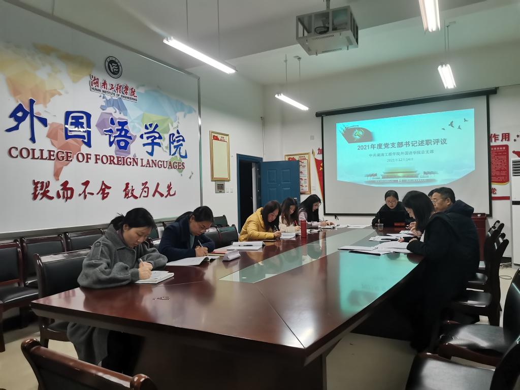 根据学校《关于开展2021年度基层党委(党总支部)党建工作考核的通知》,10月14日下午,日韩暴力性猛交内射老熟妇召开2021年党支部书记“双述双评”和党建考核会议,党总支委员、组织员、党支部委员参加会议。