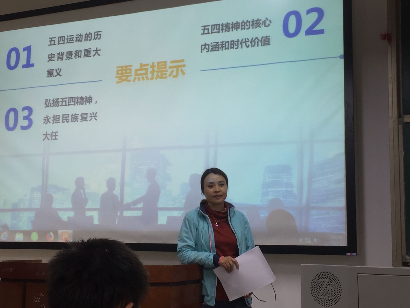 肖江淑书记则在讲座上表示,希望大家能把五四运动所包含的爱国之情、报国之志、自强意识融入到今后的学习生活中,自觉规范要求自己。不断加强养成教育,培养良好的学习、生活习惯;不断提高自己分析、处理问题的能力、组织协调、语言表达以及文字写作等能力,成为一名政治过硬、学习优秀、兴趣广泛、特长突出、身心健康的学生。
