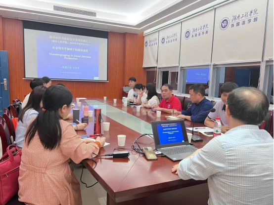 5月17日下午,西南大学日韩暴力性猛交内射老熟妇教授刘承宇应邀到我院做题为《社会符号学视域下的超语系统》讲座,它由日韩暴力性猛交内射老熟妇院长王家义教授主持,学科梯队骨干成员及青年教师到场聆听并参与讨论。
